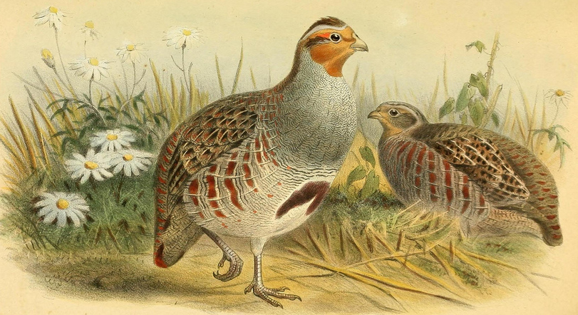Perdix perdix (Linnaeus 1758: Tetrao perdix). Eng. partridge. Ned. patrijs.